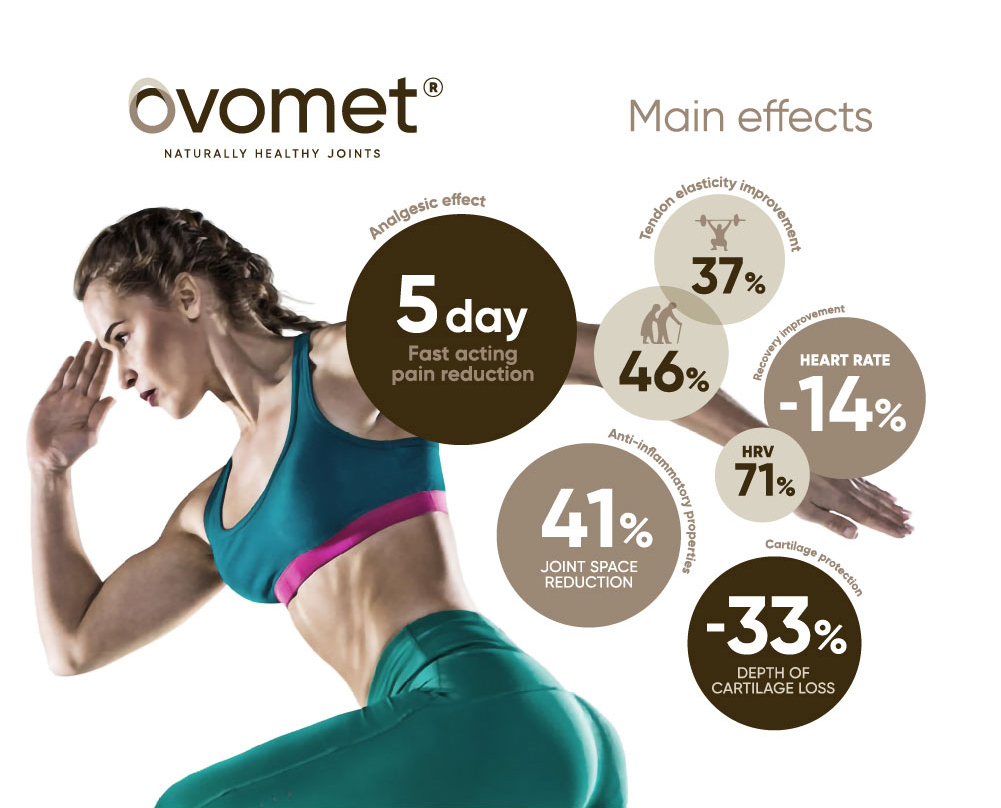 Voedingssupplementen worden op grote schaal gebruikt voor de behandeling van diverse gewrichtsaandoeningen. Ovomet®, een natuurlijke bron van onder andere plantaardig collageen, glycosaminoglycanen zoals chondroïtinesulfaat en hyaluronzuur, heeft ertoe geleid dat dit product wordt beschouwd als een potentiële behandeling voor gewrichtsaandoeningen.